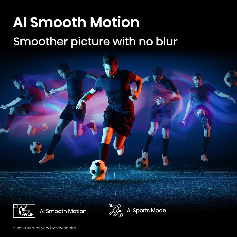 - AI Smooth Motion – Experience smooth, lifelike visuals with advanced features like MEMC (Motion Estimation, Motion Compensation) and 3D Noise Reduction, built into a highly responsive panel. With AI Smooth Motion technology, annoying motion blur lies in the past. Whether it’s fast-paced sports or action-packed gaming, every movement and sudden twist is rendered with crisp clarity, ensuring dynamic scenes appear seamless and true to life.